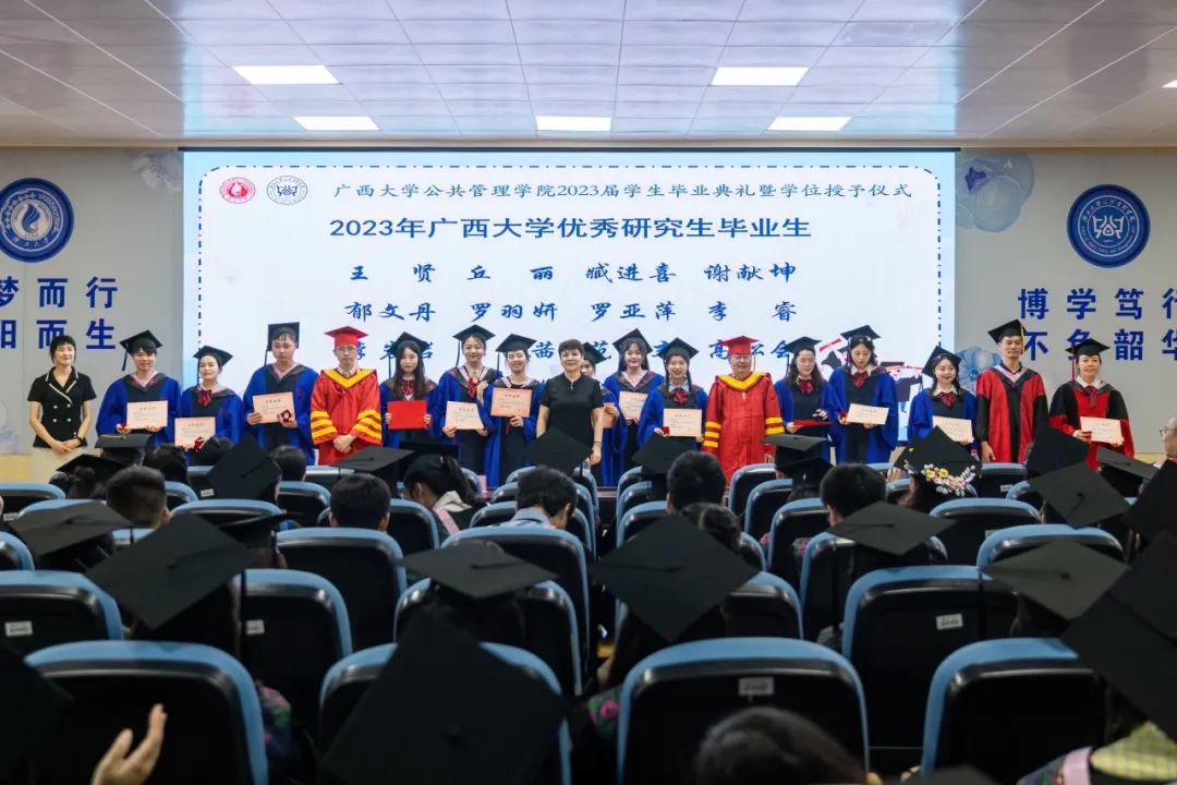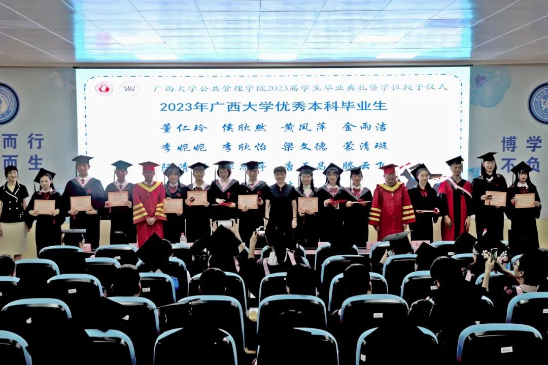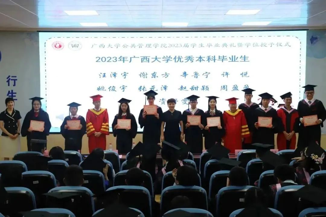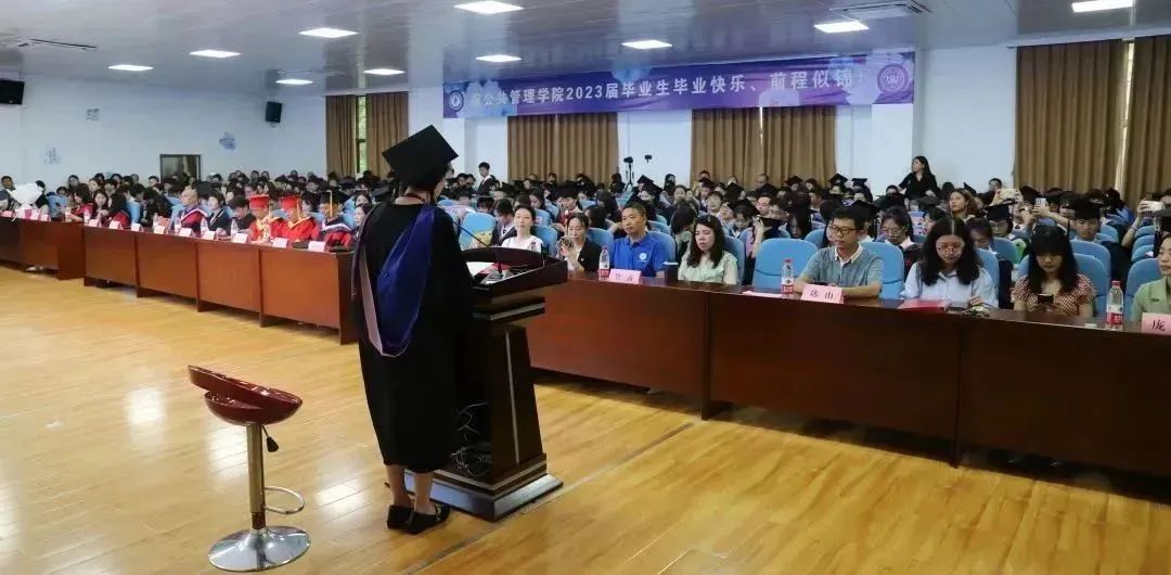 教师代表黎昌珍、罗树杰、叶大凤、吴凡、李小红、苏毅清、覃伟华、黄六招,办公室主任龚丽华,院团委书记黄文静,院团委副书记刘佩瑶,毕业班班主任,学院教学办、研究生办、MPA中心的各位老师及全体本科、学硕毕业生参加典礼。