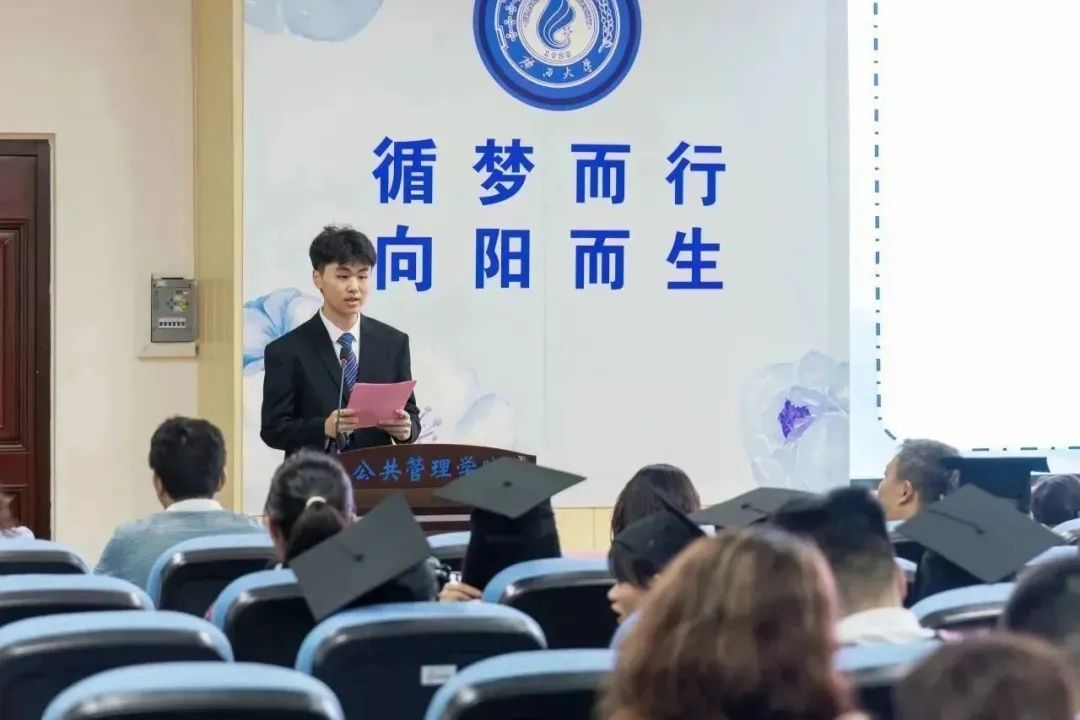 基于高度复杂和高度不确定的时代,史云贵指出开拓可能性远比探求确定性更加重要。临别之际,他给予毕业生们三点期盼,希望大家学会在不确定中,拥抱不确定性,为自己创造可能,并努力把可能变为现实。要拥有梦想,敢于有梦,创造可能。作为公管学子,要心怀梦想,坚守初心使命,胸怀“国之大者”,心系“民之所向”,自觉把个人的理想追求融入国家和民族的事业中,用中国梦激扬青春梦,让绚丽多彩的青春之花在中华大地上绽放。要不断学习,勤于追梦,拥抱可能。养成和坚持终身学习的习惯,不断地提升自己的专业能力和认知水平,持续地去拓展自己的认知边界和思维格局,努力做到与知识更迭同步伐,与时代发展共脉动。梦想从学习开始,让勤奋学习成为青春远航的动力。要持续奋斗,勇于圆梦,实现可能。奋斗出幸福,实干向未来。成功靠的是日夜拼搏,奋斗是成就所有可能的必由之路。“路虽远,行则将至;事虽难,做则必成”,脚踏实地的努力和坚忍不拔的奋斗成就出彩的人生。