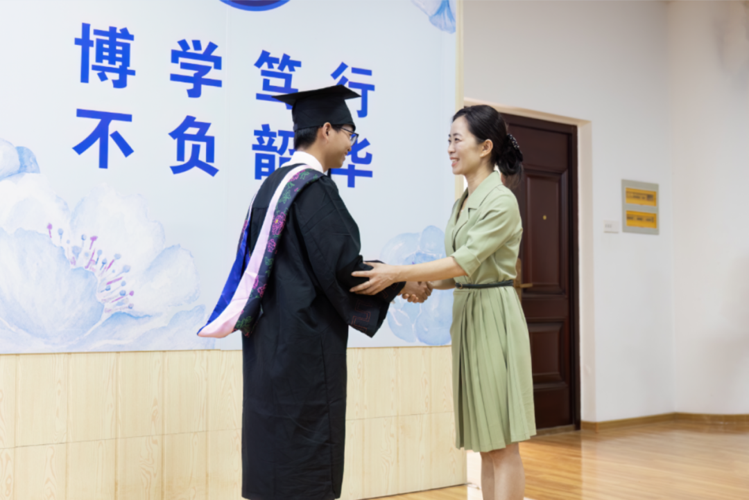 院领导为优秀毕业生颁发荣誉戒指和证书。