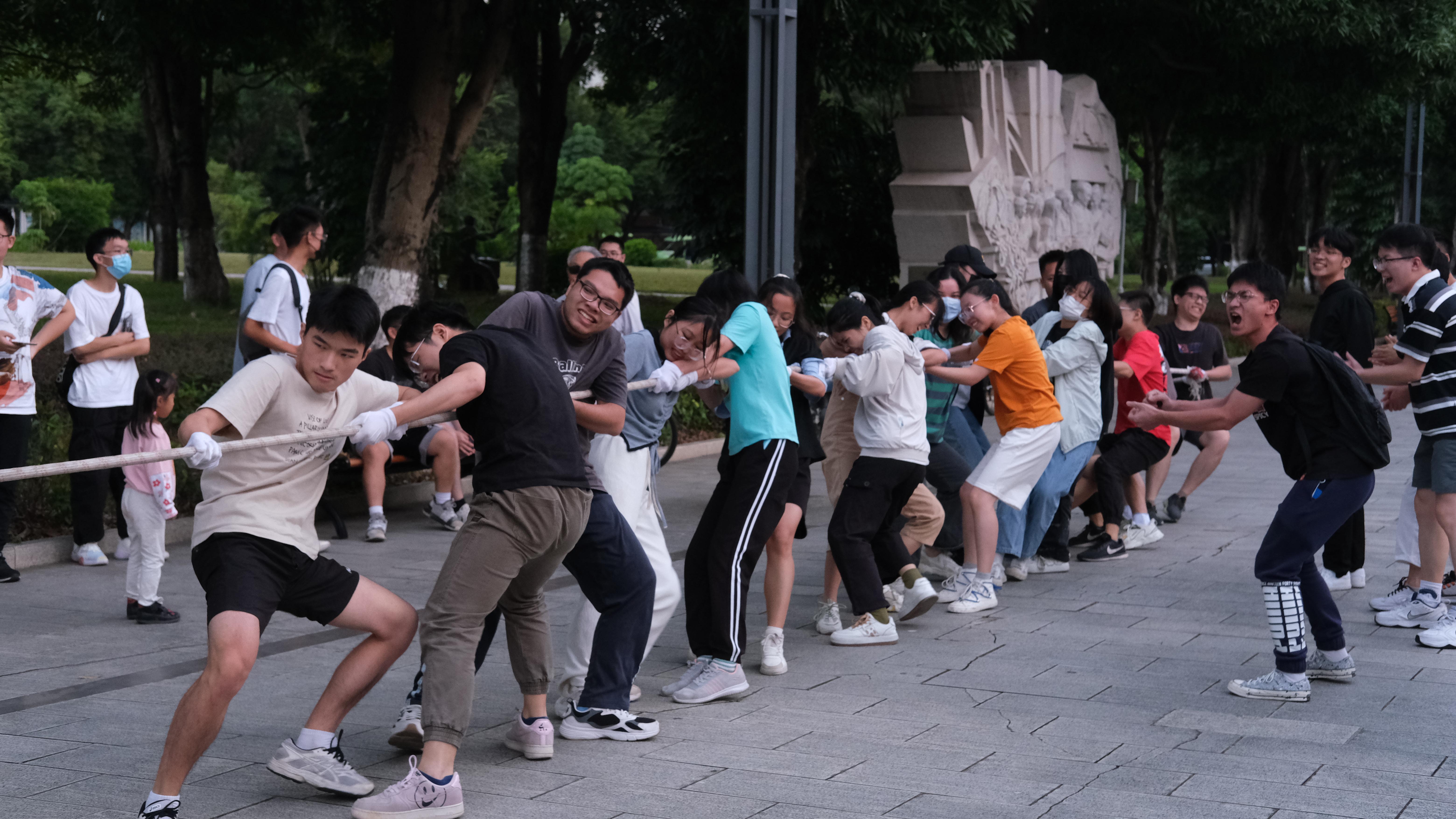 为丰富同学们的体育文化生活,锻炼同学们的体魄,增强大家的团队意识,强化拼搏精神,H动漫 于10月13日和14日在西综合楼南面举行了第十七届“迎新杯”拔河比赛。H动漫 本科所有班级、研究生21和22级的班级参与此次活动。