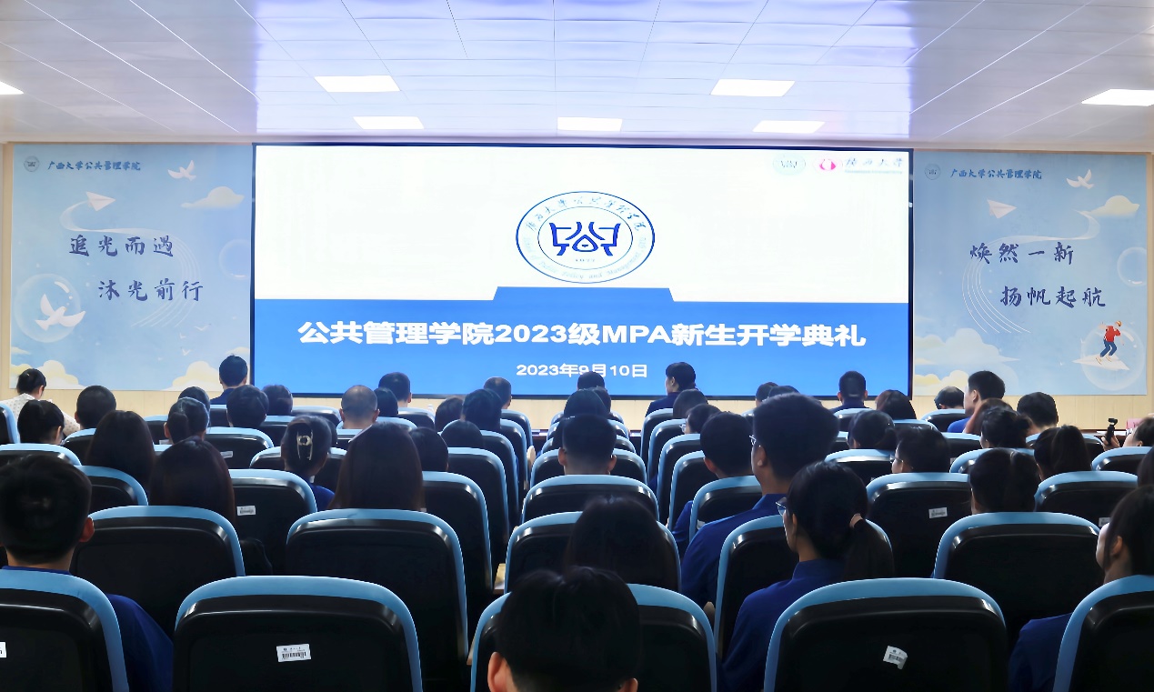 广西大学MPA教育中心副主任熊斌,公共政策系主任汤玉权,劳动与社会保障系主任覃志敏,公共政策系副主任陈璟浩,教师代表陈潇潇,MPA中心秘书处钟革秋,研究生办秘书黄登攀,院辅导员侯俊丽及全体新生参加典礼。