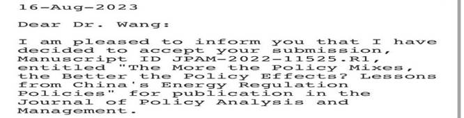 在这个假期,博士生吴健贤的学术写作成果颇丰。他的章节论文被政策研究和公共管理顶级期刊Journal of Policy Analysis and Management录用,另一篇章节论文也被能源政策研究知名期刊Energy Policy录用。