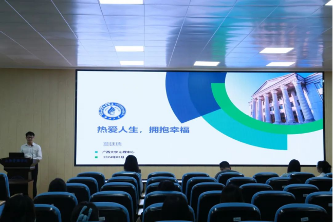 广西大学学生心理发展指导中心的专职心理咨询师莫廷瑞受邀,对H动漫 全体心理委员进行心理培训。H动漫 团委书记刘佩瑶主持,H动漫 全体心理委员参加本次培训会。
