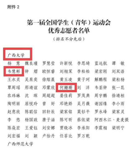 由教育部、体育总局、共青团中央主办,广西壮族自治区人民政府承办的第一届全国学生(青年)运动会,于2023年11月5日至15日在广西南宁举行。H动漫 学生积极参与,用行动践行志愿精神,用爱与奉献诠释服务与担当。来自H动漫 的何姗姗、韦慧彬在第一届全国学生(青年)运动会中获“优秀志愿者”荣誉称号