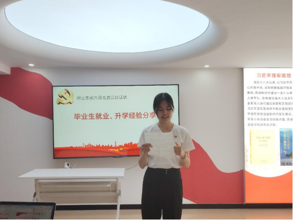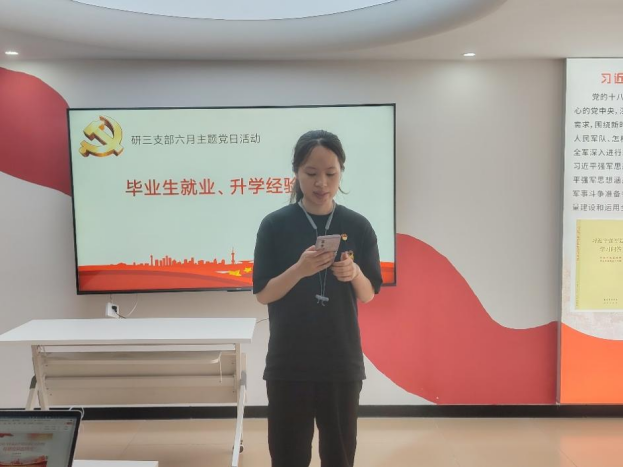 通过五位毕业党员的经验分享,研三支部全体成员对未来的职业规划有了更为深入的认知和思考为同学们即将面临的求职准备、升学抉择及考试策略等方面提供强有力的支持与指导。