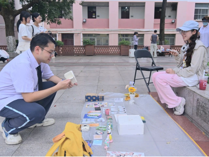 活动现场,各类商品琳琅满目,摊位前热闹非凡。除了常见的课本和工具书,小巧可爱的钥匙扣、做工精巧的手工艺品、童真有趣的泡泡机也出现在市场上,吸引了众多同学驻足挑选。摊主们热情洋溢地向来往同学介绍商品的特点和使用方法,讲述它们背后的温暖故事,每一件物品都承载着珍贵的校园记忆。