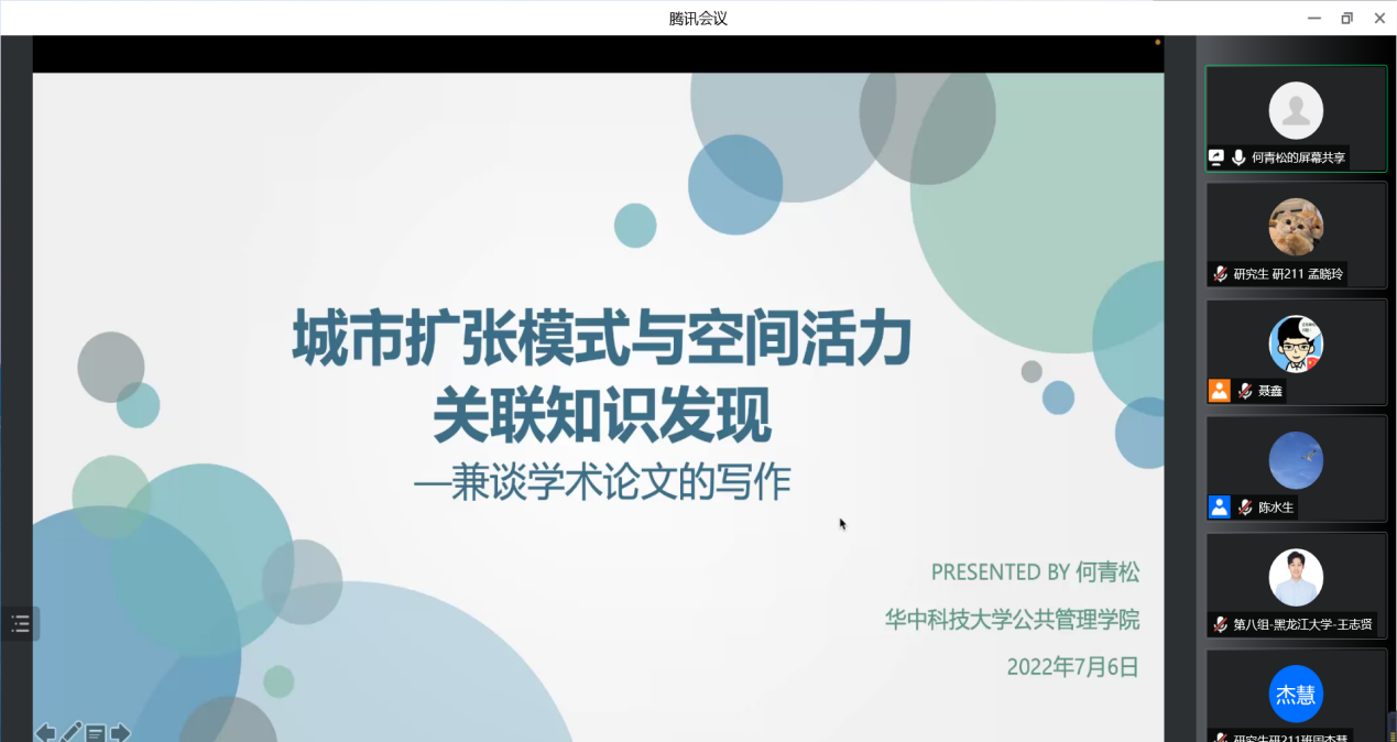 6日,H动漫 举行了三场学术讲座,讲座以线上会议的形式举行,分别邀请了复旦大学教授陈水生、华中科技大学研究员何青松、浙江大学研究员吴佳雨作主题为《行政管理的学科发展及学习规划建议》、《城市扩张模式与空间活力关联知识发现—兼谈学术论文的写作》、《城市绿色空间治理》的分享,H动漫 党委书记聂鑫教授主持会议,全体夏令营营员及学院多名老师、研究生参加本次学术讲座。