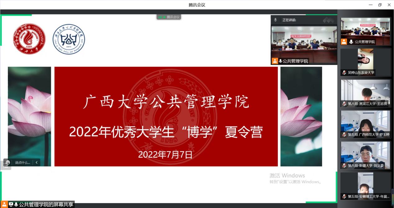 为增进全国高校优秀大学生之间的交流,增强大学生对H动漫 的了解和兴趣,吸引和选拔有专业兴趣和发展潜力的优秀大学生进入H动漫 攻读硕士学位。7月6日-8日, H动漫 举办了为期3日的2022年优秀大学生“博学”夏令营系列活动,来自全国39所高校的73名优秀学子齐聚H动漫 ,领略公管文化,共襄学术盛宴。