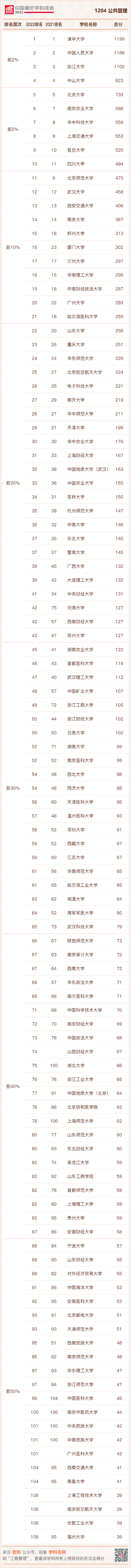广西大学公共管理学科在公共管理学科TOP100排名中名列第39位,较去年(第45位)上升6位,属该学科前20%。