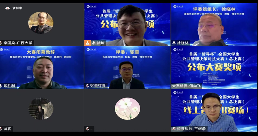 本次大赛由广西高校公共管理类教学指导委员会与陕西省高等教育学会、湖北省行政管理学会、上海市公共政策研究会、吉林大学行政学院联合主办,暨南大学H动漫 (应急管理学院)承办,上海哲寻信息科技有限公司提供全面技术支持,是面向公共管理学科相关本科专业在校大学生的专业竞赛项目。与传统案例大赛相比,本次大赛在形式和内容上有了较大突破与改变,在激烈对抗中更能突出参赛团队通过数理模型分析决策的系统性思维,运用公共管理专业知识应对现实问题时选手的综合素质和实践能力。