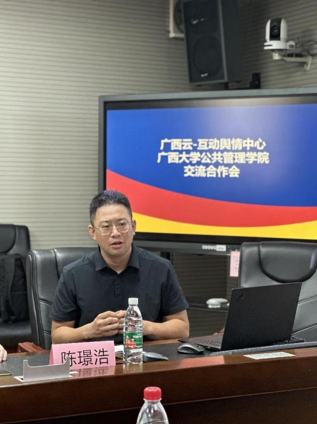 院公共政策系副主任陈璟浩介绍并分析了院校同网信办的合作基础。他指出,舆情数据资源的整合与运用需公共管理领域科研力量的介入,舆情治理需要专家介入来提出对策建议,以利于合理地解决问题。