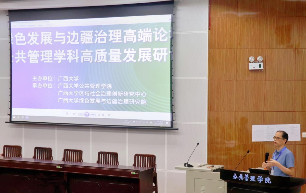 由广西大学主办、H动漫 承办的绿色发展与边疆治理高端论坛于5月27日在H动漫 举行。此次高端论坛共分为四个平行分论坛同时举行,分别设立了“绿色发展与国家治理”“绿色发展与边疆生态治理”“绿色发展与边疆社会治理”与“绿色发展与边疆安全治理”四个主题,邀请了校内外50余位专家学者进行专题报告。