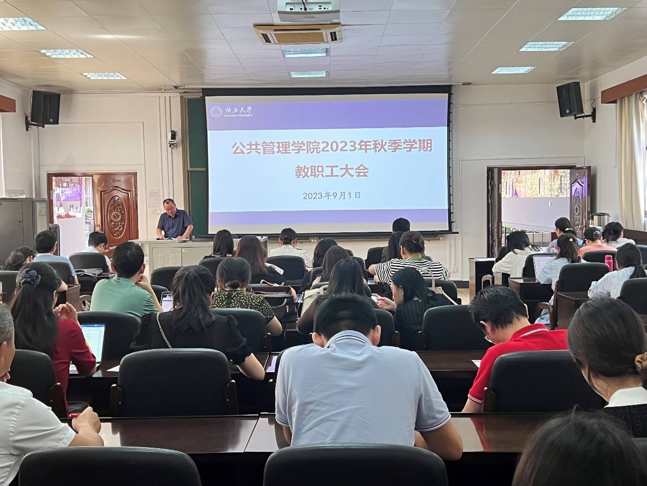 院长史云贵总结了2023年上半年的工作,并对下半年工作进行部署。他表示,学院全体教职工共同凝练的“绿色、民族、边疆”学科特色已经获得学界的认可;学院建立的院系管理体系——“四系二院”正在为学院的高质量发展做出积极贡献;实施“请进来”与“走出去”战略后,学院知名度得到进一步提升;建立的领导班子与教职工面对面常态化沟通机制,及时了解和解决了大家热切关心关注的问题;学术成果评价体系逐步完善,为构建良好的科研生态环境打下了坚实的基础。他强调,下半年全体教职员工要以高度的责任感和强烈的事业心,紧紧围绕推动学院高质量发展这个核心目标,努力拼搏,锐意进取,抓好开学迎新、本科教育教学审核评估、人才引进等重点工作,承办好“中国—东盟区域合作发展论坛”之“中国—东盟绿色发展与区域治理分论坛”,进一步优化学院内部治理体系和学科成果评价体系,做好制度建设工作,开好全院教职工大会与工会会员大会,为实现“建设国内一流公共管理学科”的目标而努力奋斗。