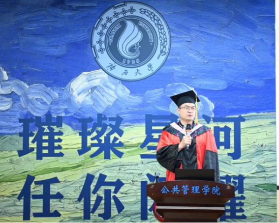 李国梁作为教师代表发言,他深入阐述了公共管理专业硕士学位的意义,强调其目的是培养适应社会主义现代化建设需要的高层次、应用型、复合型管理人才。他以MPA三个字母为引,向毕业生们提出了三点殷切的希望:成为公共管理领域的大师、具有公共精神和责任担当、在行政管理中坚持以人为本,并希望毕业生们不忘初心,继续关注和支持母校的发展,并祝愿他们未来工作顺利、家庭幸福。