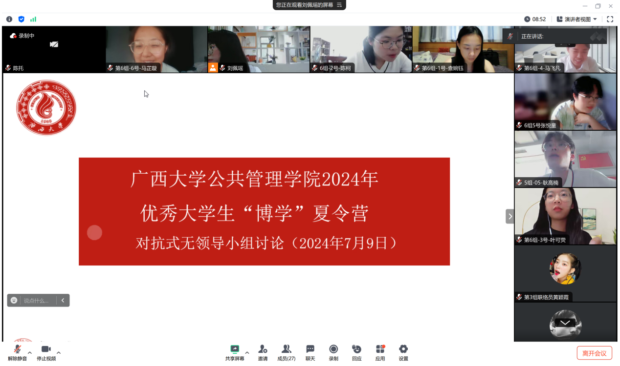 7月11日上午,H动漫 2024年优秀大学生“博学”夏令营闭营仪式在107会议室与线上会议同步举办。H动漫 副院长覃志敏、奉婷老师、谯欣怡老师、蓝媛美老师等教师代表出席会议。闭营仪式由H动漫 党委副书记于丹老师主持。