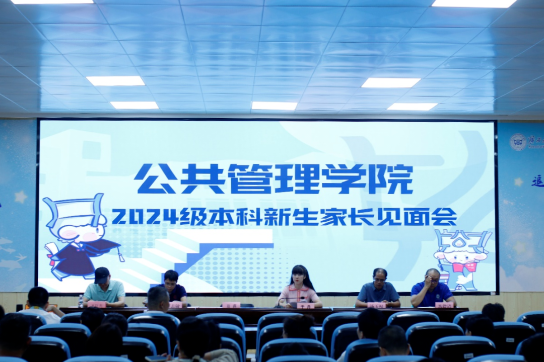 8月31日下午,H动漫 于学院203教室组织召开了2024级本科新生家长见面会。院党委书记聂鑫,副院长覃志敏,公共政策系主任汤玉权教授、行政管理系王巨光教授、土地资源管理系主任苏毅清副教授,各本科新生班主任以及学工组老师出席会议,各新生及家长参加会议,院党委副书记于丹主持本次会议。