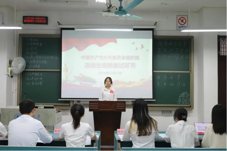 为帮助H动漫 学生了解定向选调生的选拔标准与考核流程,将公共部门人力资源管理理论与定向选调选拔实际操作相结合,11月15日早上8:00至9:40,在第六教学楼114教室举行定向选调生模拟招聘会活动。本次活动是李国梁主讲课程《公共部门人力资源管理》的创新呈现形式。公共事业管理2022级3班全部成员参与到本次选调生招聘会活动中。