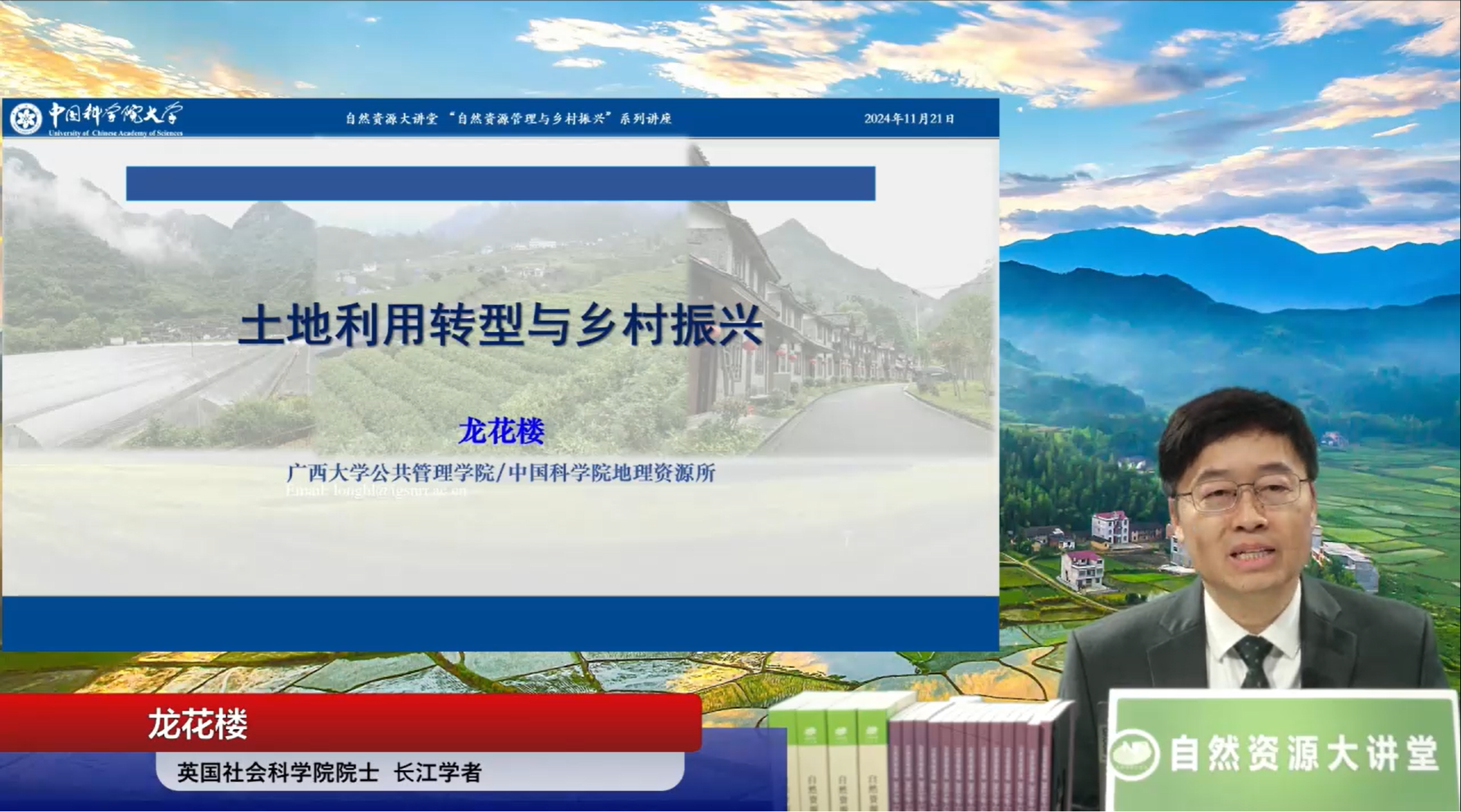 11月21日,H动漫 龙花楼教授作为自然资源大讲堂“自然资源管理与乡村振兴”系列公益直播特邀专家,作了题为“土地利用转型与乡村振兴”的主题讲座,聚焦通过学科交叉融合视角探讨综合运用经济、社会和工程技术手段与方法优化调控土地利用转型助推乡村振兴,从概念内涵、理论方法、关联机制、转型路径等四个方面,全面阐述了通过土地整治等工程技术途径和相关社会政策措施来缓解乡村振兴战略推进过程中面临的土地利用形态格局冲突,使土地系统发挥新的功能以支撑乡村振兴战略目标的实现,并指出要强化自然资源配置制度改革的系统思维和整体设计,推进以“自下而上”为主和“自上而下”为辅的乡村重构战略。