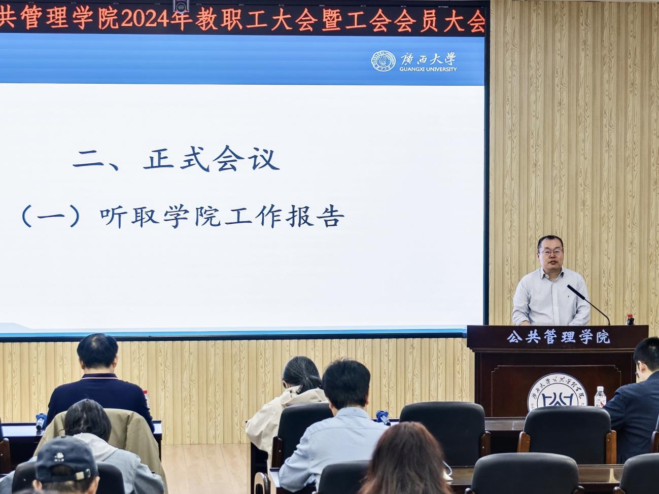 会上,分工会主席陈林副院长从分工会优化工会组织建设、落实教职工暨工会会员大会职权、组织参加校工会活动、开展学院分工会活动、分工会经费收支情况等五个方面向大会汇报了分工会2024年各项工作成效。