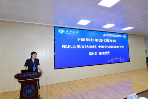 论坛尾声,东北大学土地资源管理系主任高佳副教授代表东北大学文法学院发表热情洋溢的表态发言。她以 “自强不息、知行合一” 的校训为引,诚挚邀请全国师生明年相聚沈阳,在百年学府东北大学,传承学术薪火,共探土地资源管理学科未来发展新方向。