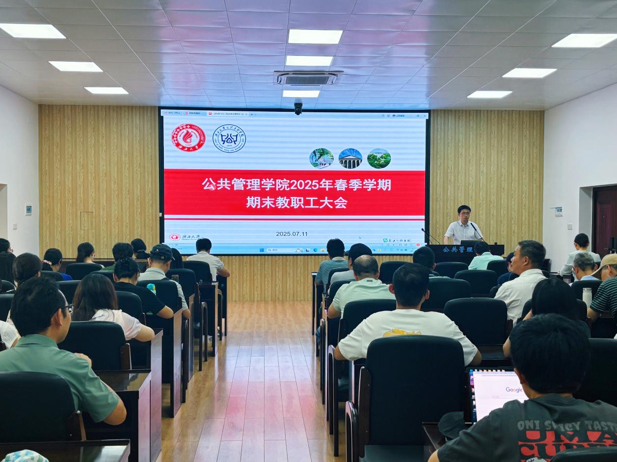 711下午3时,2025年春季学期期末教职工大会在学院107报告厅隆重召开。学院全体教职工齐聚一堂,共同回顾总结过去一学期的耕耘与收获,展望未来发展蓝图。