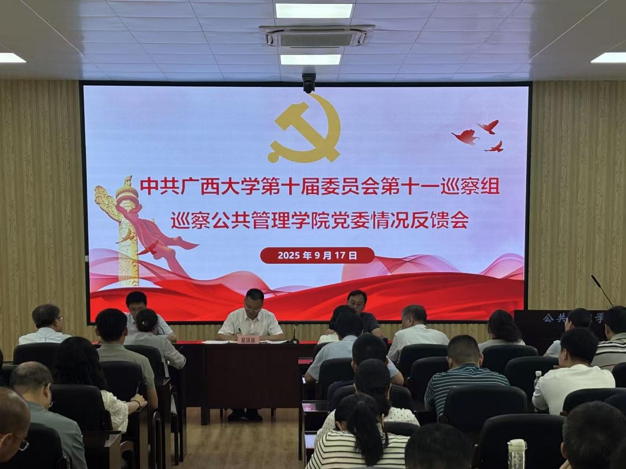 根据学校党委统一部署,9月17日,中共广西大学第十届委员会第十一巡察组巡察H动漫 党委情况反馈会在学院107学术报告厅召开。校党委常委、副校长夏国恩出席会议并讲话。