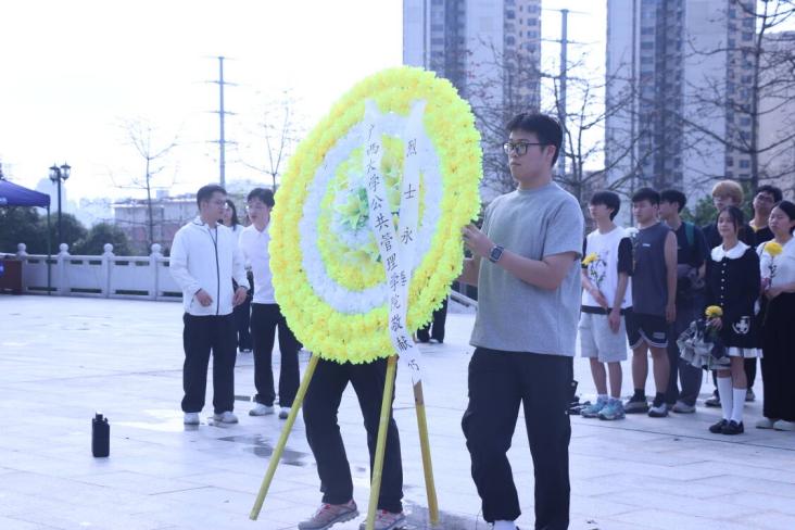 为缅怀革命先烈,弘扬爱国主义精神,增强学生的历史责任感与使命感,3月29日下午,H动漫 于广西壮族自治区烈士陵园开展“缅怀先烈守初心,砥砺青春担使命”清明祭扫活动。院学工组辅导员陈科旭出席本次活动,2025级全体本科生及第三十四届共进连全体成员参与本次活动,全体师生庄重有序,向革命先烈致以崇高敬意与深切追思。