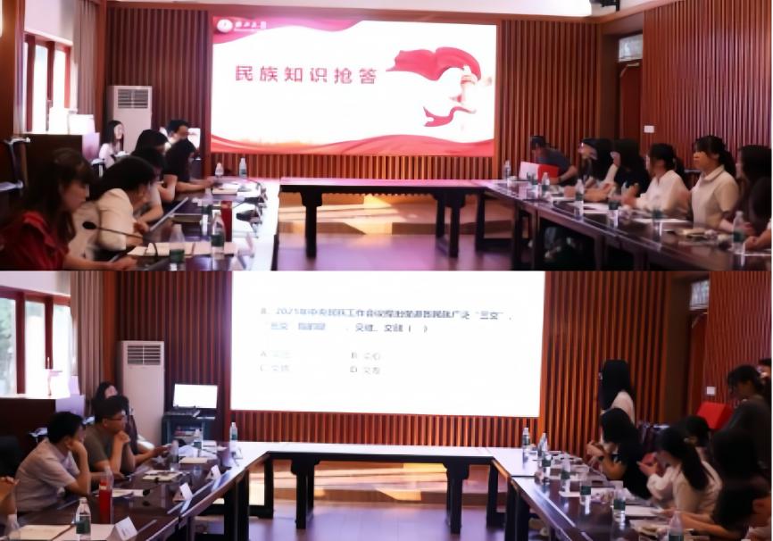 在民族知识抢答环节,同学们踊跃举手、积极应答,现场气氛热烈活跃,在互动中进一步加深了对民族文化的了解与认同。活动最后,老师们为参加活动的同学们赠书送书籍,鼓励同学们多读书、读好书、善思考,在书香浸润中提升素养、增长才干。