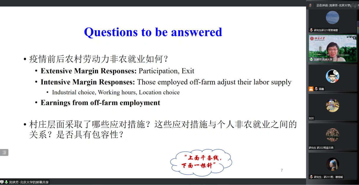 师生带来了题为“Coping with the COVID-19 off-farm employment shock: The extensive and intensive margin responses”的主题讲座,H动漫