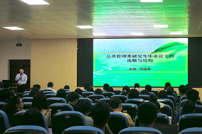 5月5日下午,四川大学H动漫 范逢春受邀于H动漫 作 “公共管理类研究生毕业论文选题与结构”主题讲座。H动漫 党委书记聂鑫,院长史云贵,副院长魏万青出席本次讲座。副院长周均旭主持讲座。