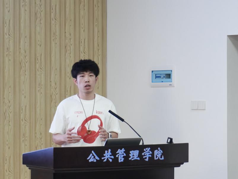 22级学硕覃思杰同学分享的内容题目为《市场机制在农村人居环境治理中何以可能?——基于中国边疆地区976个农户的问卷调查》。他首先介绍了大部分欠发达农村地区人居环境治理面临着“小财政”与“大治理”矛盾等现实背景,进而引出两个研究问题:一是市场机制能否有效改善农村人居环境治理,二是政府与市场混合治理模式是否能够与如何改善农村人居环境治理。