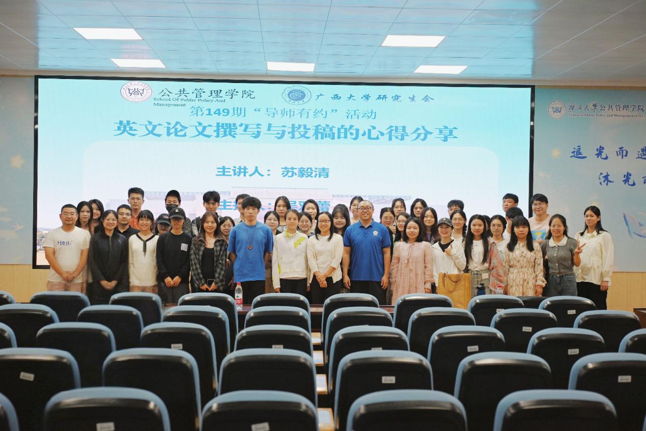 10月30下午,广西大学第149期“导师有约”系列活动H动漫 第41期研究生学术沙龙活动于H动漫 203报告厅顺利举行。本期活动以“英文论文写作与投稿经验分享”为主题,邀请了苏毅清老师为主讲人,旨在给同学们传授英文论文写作与投稿的技巧,提升英文论文投稿的成功率。本期活动由吴双蕾老师主持,H动漫 数十名师生参与其中。