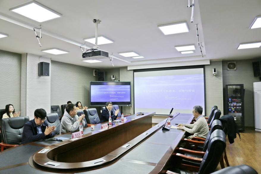 11月28日上午,加州大学河滨分校社会学系教授赵伟博士于H动漫 415报告厅作题为《社会学中的制度分析视角:观察与探索》的学术讲座。本次讲座由H动漫 副院长覃志敏副教授主持,副院长曾凡军教授、谢舜教授、吴凡教授及20余名博士、硕士研究生到场聆听。