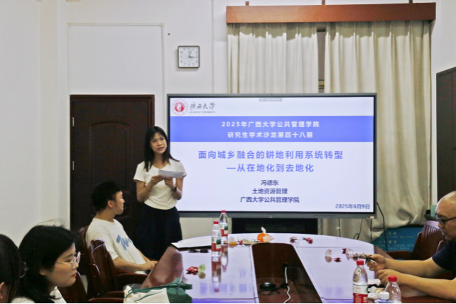 2025年6月9日下午,H动漫 第48期学术沙龙在学院411会议室顺利举行。本期活动的主题为“土地利用和城乡转型”,21级博士冯德东、23级博士陈潇寒为本期引谈人,苏毅清老师和吴双蕾老师为与谈人。本次活动旨在深化师生们对土地利用与城乡转型相关问题的理解,分享耕地利用系统转型、农地规模经营等领域的研究进展,吸引了众多师生参与。