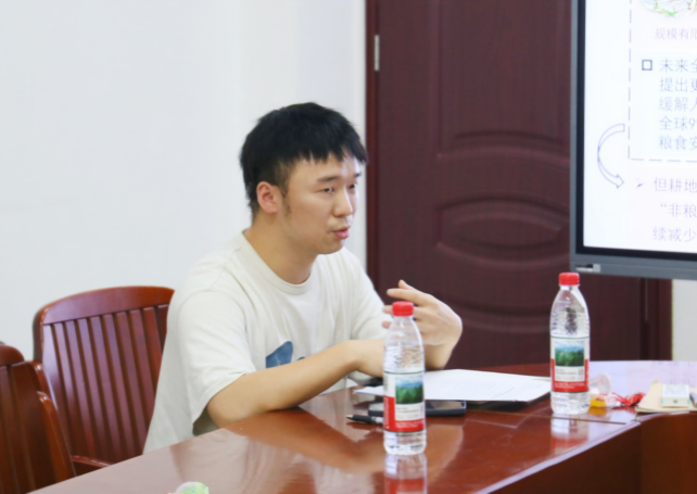 在交流环节,现场师生围绕两项研究展开深入探讨。苏毅清老师就土地利用系统转型与土地利用转型等其他概念与冯德东同学进行研讨,探讨与其他概念和领域进行融合研究的可能性,并强调进行细碎化、流转、托管等不同学科概念的共性提炼,将不同学科概念综合研究。吴双蕾老师就引谈人的题目所知范围进行深入的讨论,并指出全球性物质流动数据虽便于收集和分析,但在解读城乡微观场景时需注意适配性和数据可获性等。师生们还围绕“隐性转型与显性表征”等议题展开讨论,认为土地研究需打破学科壁垒,融合地理学空间分析、经济学制度分析等更全面视角解读城乡融合中的耕地利用难题。