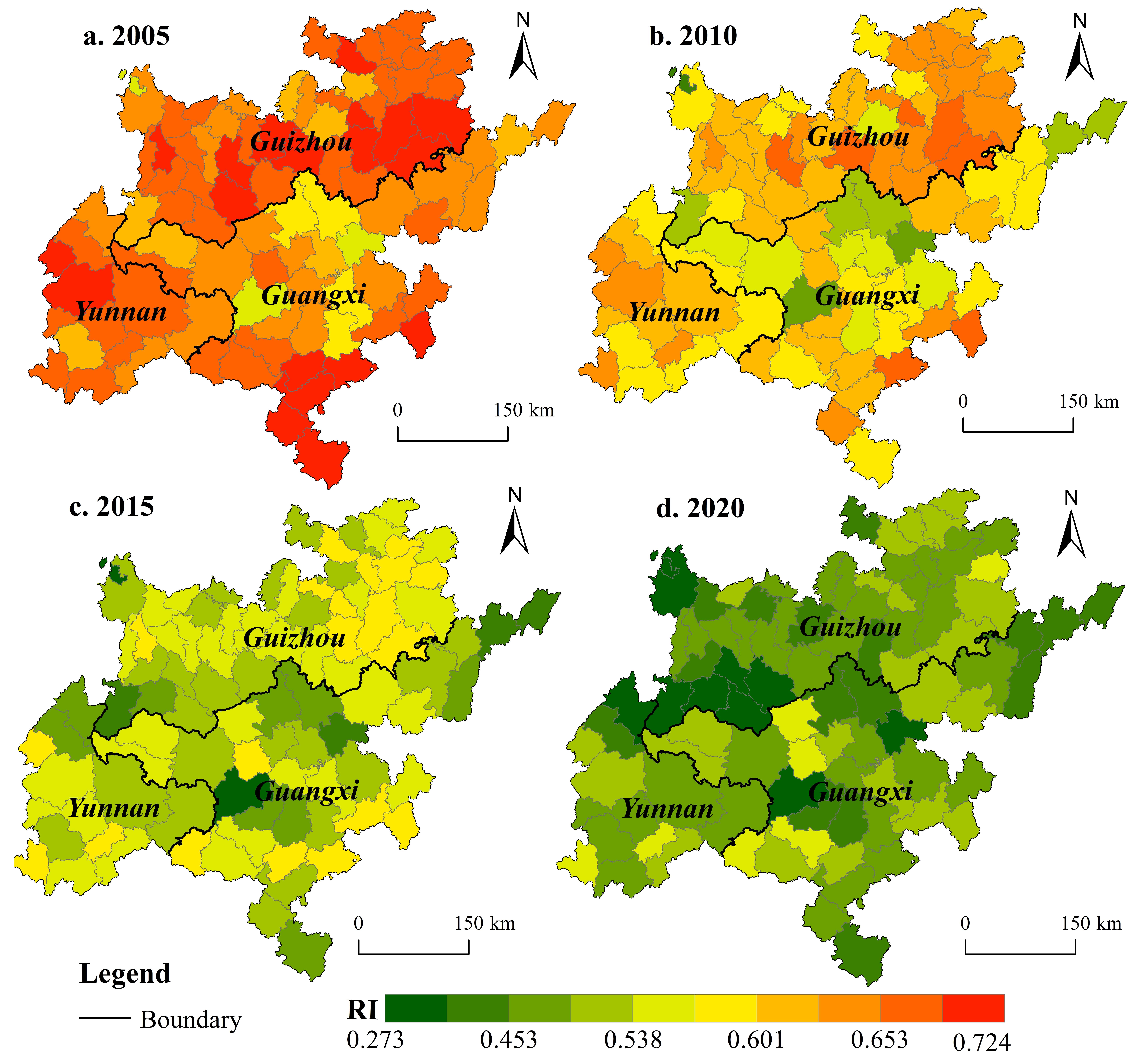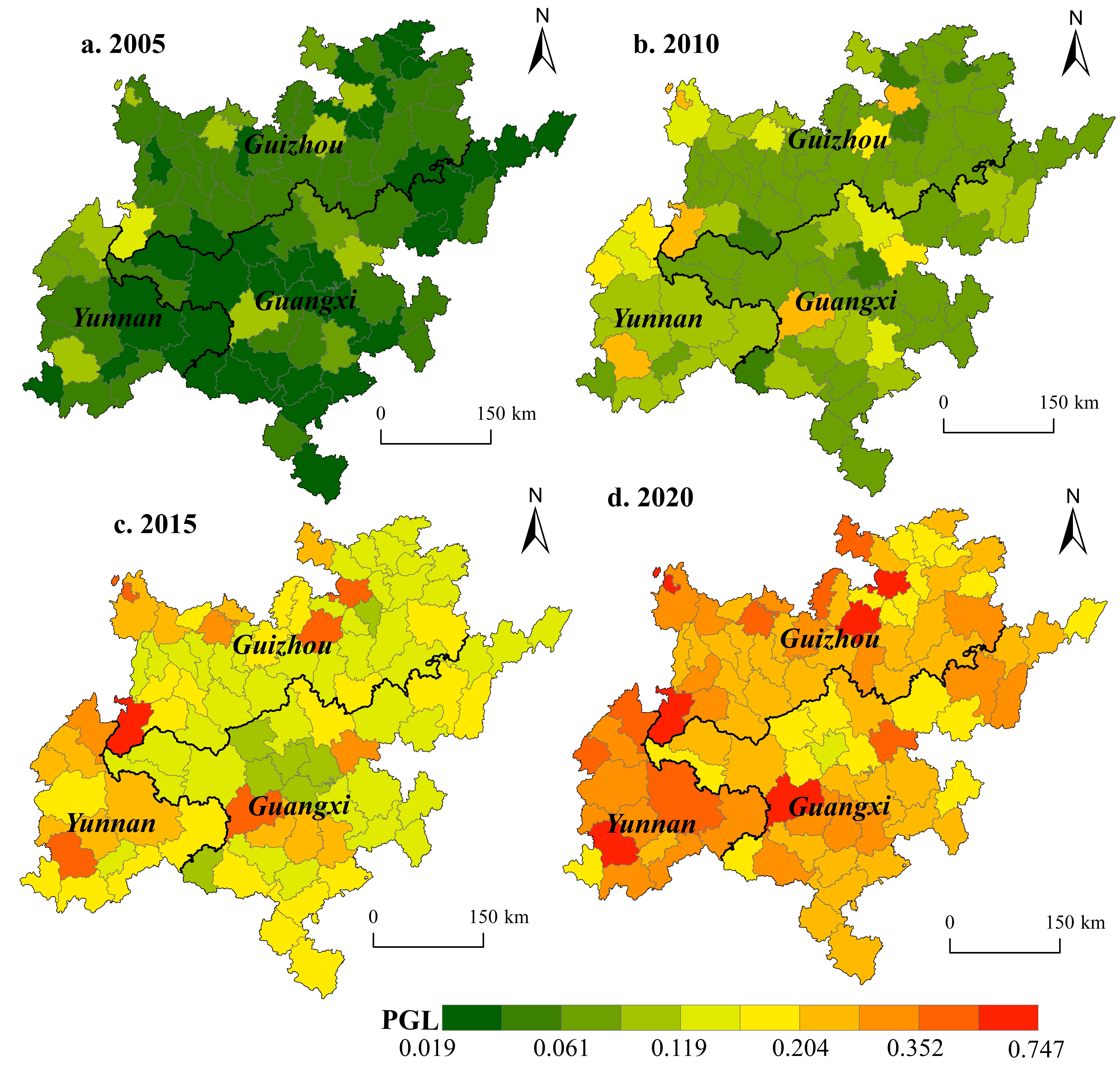 Feng, D., Jiang, Y., Long, H., Huang, Y., 2024. Spatio-temporal patterns and correlation effects of regional rurality and poverty governance change: A case study of the rocky desertification area of Yunnan-Guangxi-Guizhou, China.Habitat International, 146, 103044.