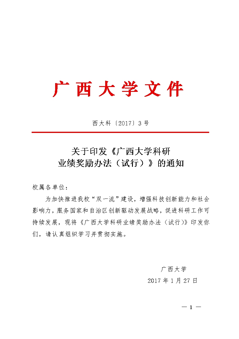 广西大学科研业绩奖励办法