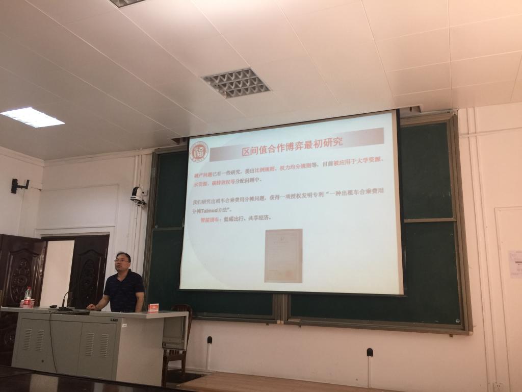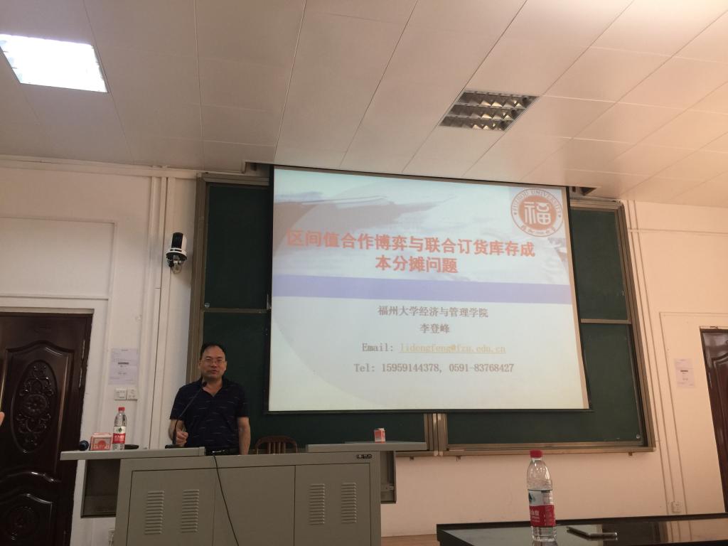 5月27上午10时,福州大学经济与管理学院教授李登峰于H动漫 107学术报告厅开展主题为“区间值合作博弈与联合订货库存成本分摊问题”的学术讲座。讲座由H动漫 汪晗副教授主持,数信学院刘芳教授、H动漫 聂鑫教授和H动漫 众多研究生参加了本次讲座。