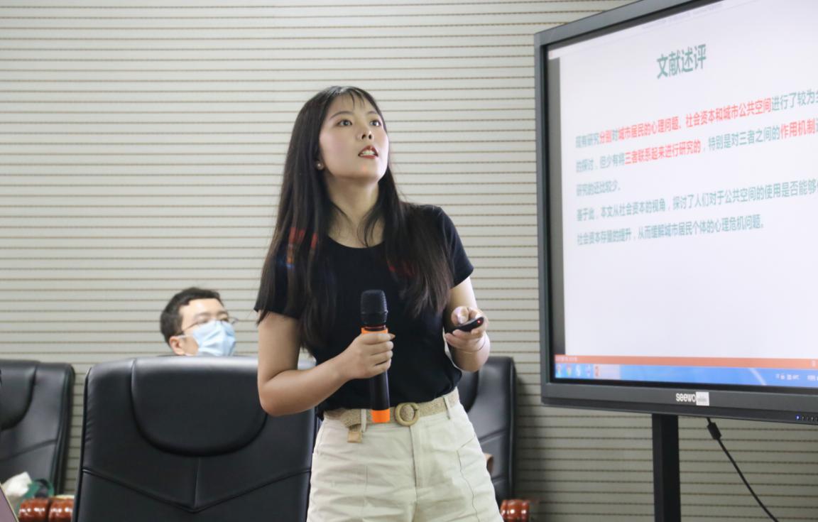 张小银同学与大家分享题为《城市公共空间的使用何以缓解居民个体的心理危机——基于社会资本的中介效应》的文章,她从研究背景、研究问题、文章的内容与方法、结论与讨论、写作心得与共勉五个方面展开讲解。文章基于原子化社会带来个体心理问题的背景,通过梳理城市公共空间、社会资本、居民个体的心理危机三个方面的相关文献,从社会资本的三维经典结构出发,围绕以下问题进行研究:使用城市公共空间缓解居民个体危机的作用和机制是什么?如何从公共空间的角度化解城市中的原子化社会问题?研究首先从理论上对城市公共空间的使用、社会资本的供给与缓解居民个体的心理危机的机制进行分析,并据此提出文章的研究假说,接着使用中介效应分析方法对调查数据进行定量分析,研究发现,从总体上看,城市公共空间的使用有利于促进个体心理危机的缓解;从机制上看,城市公共空间的使用能够促进人际间的相互熟悉度和信任度,形成互惠互利的行为规范,从而缓解个体心理危机问题。此外,张小银同学表示文章还存在数据严谨性不够、内容代表性不足等问题,这为下一步研究提供了方向。最后,张小银同学用“笔耕不辍,孜孜矻矻”八个字对其写作心得进行总结,认为在写作过程中既要看文献、记笔记、多思考、勤动笔,又要静得下心、吃得下苦、耐得寂寞、心态平和。