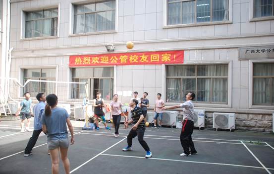 排球赛结束后,大家移步至学院415教室召开校友座谈会。广西大学校友办主任(哲学81级校友)李高南、H动漫 院长谢舜、学院党委书记周瑞超、学院党委副书记甘武琳、副院长李小文、以及罗树杰教授、杨欣教授、校友工作联系人李波等领导老师与校友们共话西大情。座谈会上,李高南主任首先对能够前来参加这次校友会的校友们表达了谢意,感谢他们能够在母校九十华诞即将来临之际回来看望母校,希望校友们能够不忘母校、不忘师恩,积极为母校的发展做出贡献。紧接着,院长为在座的校友们介绍了学院最新的变动,并表示学院的办学水平正是因为有了出色的校友才得到不断提高,同时也希望公管学院的校友能把资源整合起来,加强学院与校友之间、校友同学之间的联系,不断将学院发扬光大。已退休教授杨欣老师也特别嘱咐大家说:“虽要打拼,但要保重。”最后,在座校友向老师们倾诉心中情怀,从81级到2014级,从本科生到研究生的他们,诉说着当年的青涩时光,回忆着老师的教诲。校友们均表示,虽然不能常回母校、常回学院,但心里仍有一隅留给这里,也时刻关注着学校以及学院的发展。