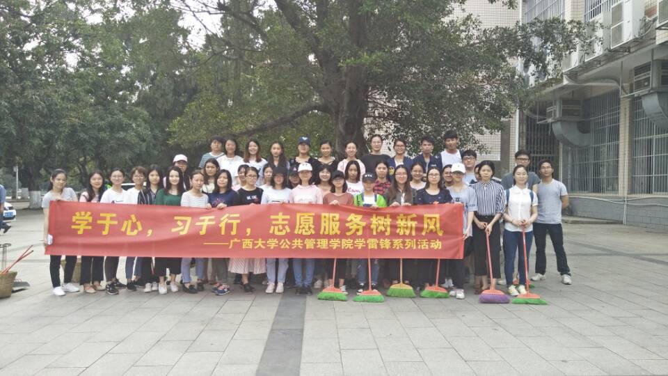 为发扬学习雷锋,助人为乐的精神,塑造一个良好的环境,4月3日下午,公共事业管理2015级的同学组成志愿服务小分队,在广西大学东校园碧云湖广场和碧云湖周围进行了清洁活动,为校园的环保美化工作尽一份绵薄之力。