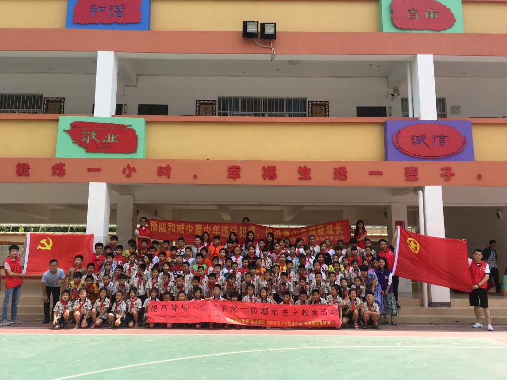 2018525日上午,石埠街道团工委组织开展青少年自护宣传教育进校园活动,H动漫 2017级研究生第一党支部全体党员作为大学生志愿者与工作人员一起到石埠中心小学开展“提高警惕,防患未然”防溺水安全教育活动,为小学同学们现场宣讲防溺水安全知识,提高小学生安全意识,增强小学生自救能力。