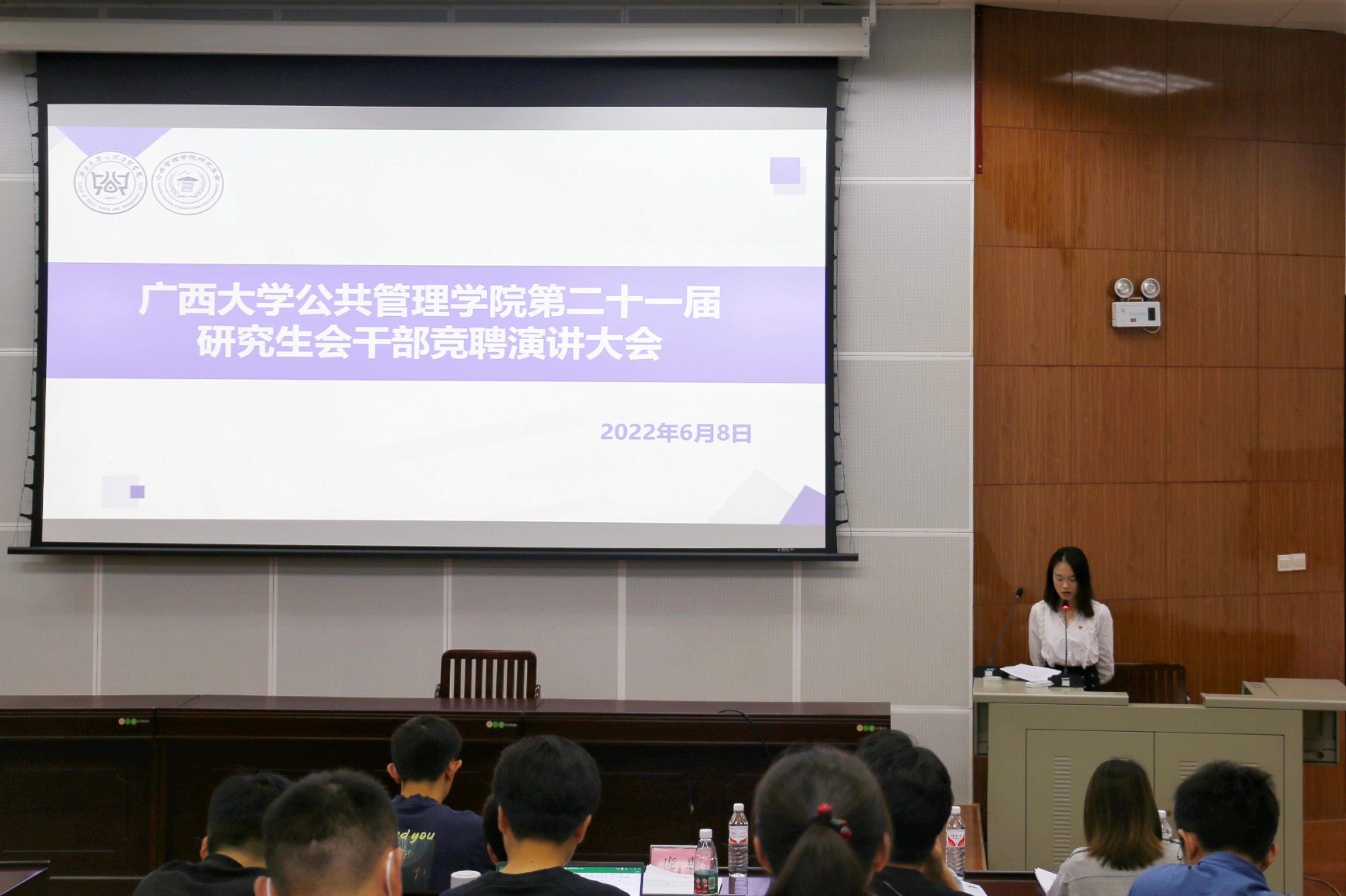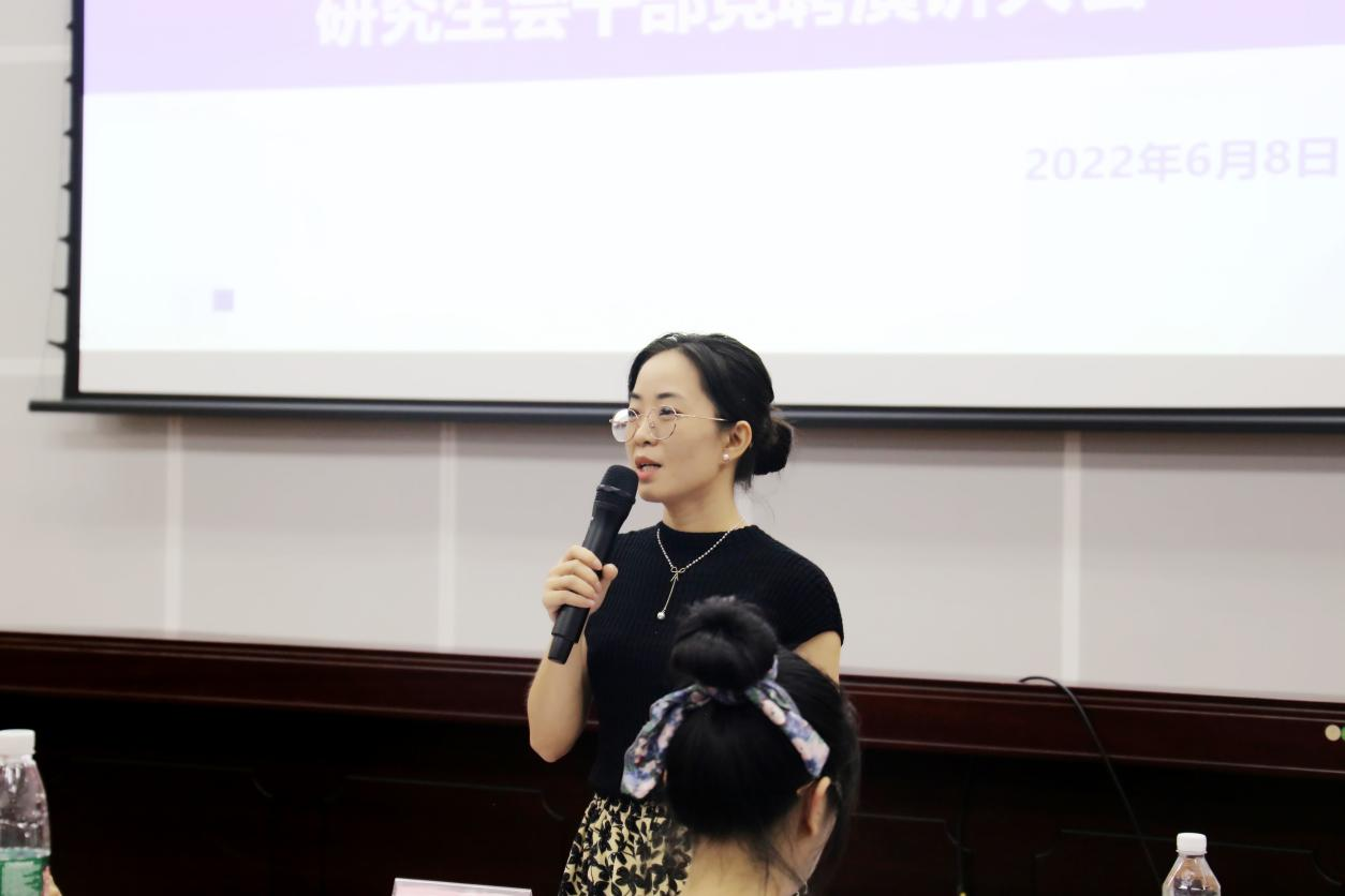 2022年6月8日上午,H动漫 第二十一届研究生会主席团候选人与各工作部门负责人候选人竞聘演讲大会在H动漫 106室顺利召开。H动漫 党委副书记庞惠老师、学院团委副书记刘佩瑶老师、学院第二十届研究生会全体成员及部分21级硕士研究生志愿者出席了大会。本次大会由秘书处吴林柽同学主持,本次大会帮助遴选学院第二十一届研究生会主席团候选人和各工作部门负责人候选人。