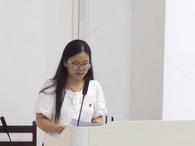接下来,第八届党建会副主任王瑞贤代表发言。王瑞贤全面总结了学生党建会2023—2024年度的工作成果。她提到,党建会通过组织党员培训、支部例会等活动,有效提升了党员素质,显著提高了党组织凝聚力,并坦诚地指出了党建会工作中培训内容和形式的丰富性、支部例会的组织严谨性等方面存在的不足。此外,王瑞贤也对新一届党建会提出了以下建议:我们要继续发扬优良传统,不断创新工作方法,为学院发展贡献更大力量。