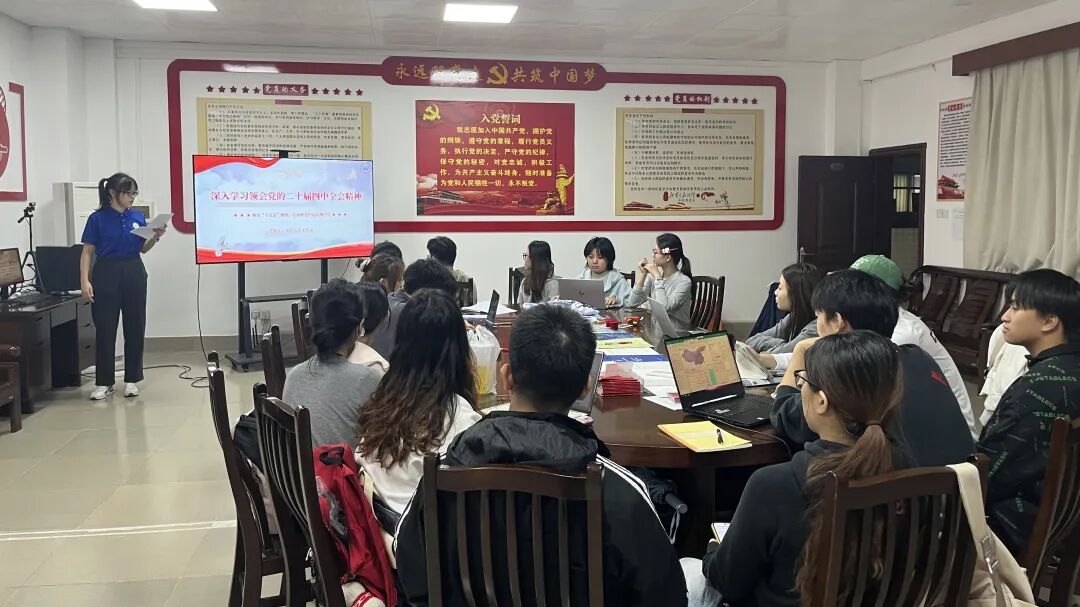 为深入学习贯彻党的二十届四中全会精神,准确把握 “十五五” 规划宏伟蓝图,切实把支部党员的思想和行动统一到党中央决策部署上,10月24日晚上19时,H动漫 本科第三党支部组织全体党员开展 “学先辈精神汲取奋进力量,悟全会精神书写青春答卷” 主题党日活动。支部党员齐聚一堂,共同学习领会全会核心要义,凝聚奋进力量。本科第三党支部书记陈科旭出席活动,全体学生党员参加本次活动。