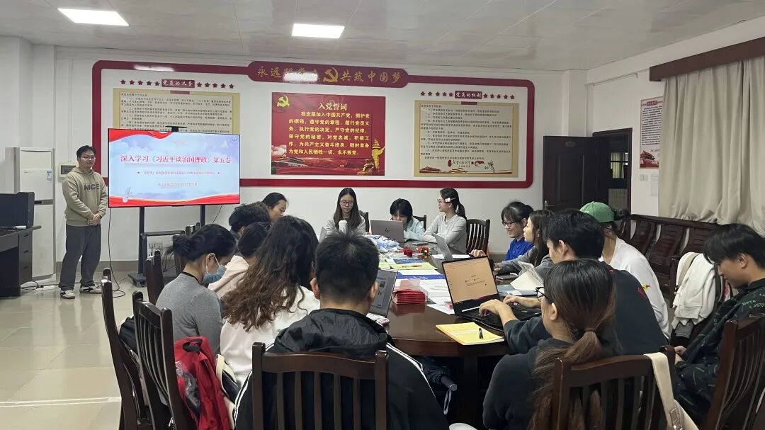 陈科旭充分肯定支部学生党员理论学习成果,就学习贯彻落实党的二十届四中全会精神,向支部学生党员提出三点期望:一是要把坚持党的全面领导贯穿学习与实践始终,学生党员要不断加强理论学习,始终确保方向不偏、行动有力;二是要加强能力建设,以党的自我革命精神提高政治站位,树立大局意识,增强服务国家发展的本领,服务学校、学院建设;三是要团结奋斗,充分调动支部内外积极因素,积极识变应变求变,牢牢把握战略主动,将全会精神转化为学习科研、服务社会的实际行动。