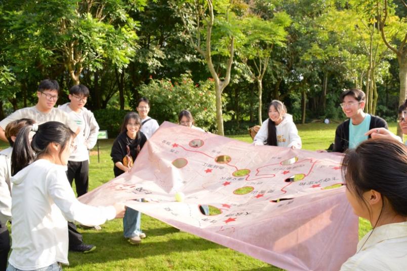 随后,活动转入南湖公园名树博览园,全体连员在此地开展红色文化竞游活动。活动设计上旨在推动党史知识教育与团队协同合作,共分为“模拟手榴弹投掷”“忆往昔峥嵘岁月”“传递鸡毛信”“重走长征路”“飞夺泸定桥”及“传好历史接力棒”六个部分。连员们在情境模拟中进行角色分工、策略制定与任务执行,在重温历史中品味红色精神。