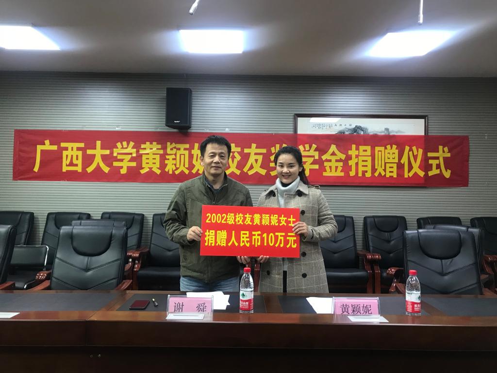 广西大学“黄颖妮校友奖学金”捐赠仪式在H动漫 举行