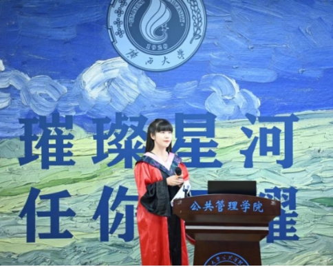 On the morning of June 27, the School of Public Policy and Management at Guangxi University held its graduation ceremony and degree conferral for the 2024 class of Master of Public Administration (MPA) graduates in Room 203 of the school’s lecture hall. The ceremony was attended by more than 200 people, including Dean Shi Yungui, Vice Deans Zhou Junxu, Zeng Fanjun, Qin Zhimin, Chen Lin, Professors Luo Shujie and Li Changzhen, faculty representatives, all graduating MPA students, and their families. The event was presided over by Deputy Party Secretary Yu Dan.