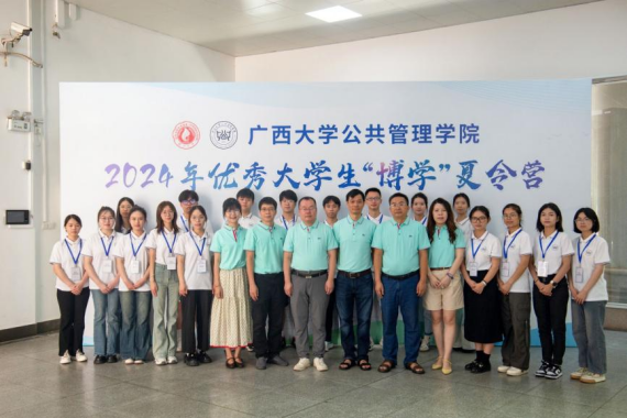 On the morning of July 9th, the 2024 “BoXue” Summer Camp for Outstanding Students, hosted by the School of Public Policy and Management at GXU, officially began. The opening ceremony was attended by Mr.Shi Yungui, Dean of the School, Vice Deans Mr.Zhou Junxu and Mr.Qin Zhimin, and Mr. Xiong Bin, Deputy Director of the MPA Education Center. This marks the sixth consecutive year the School has organized the “BoXue” Summer Camp, utilizing a hybrid “online and offline” format. Over 70 students from more than 40 universities across the country participated both virtually and in person.